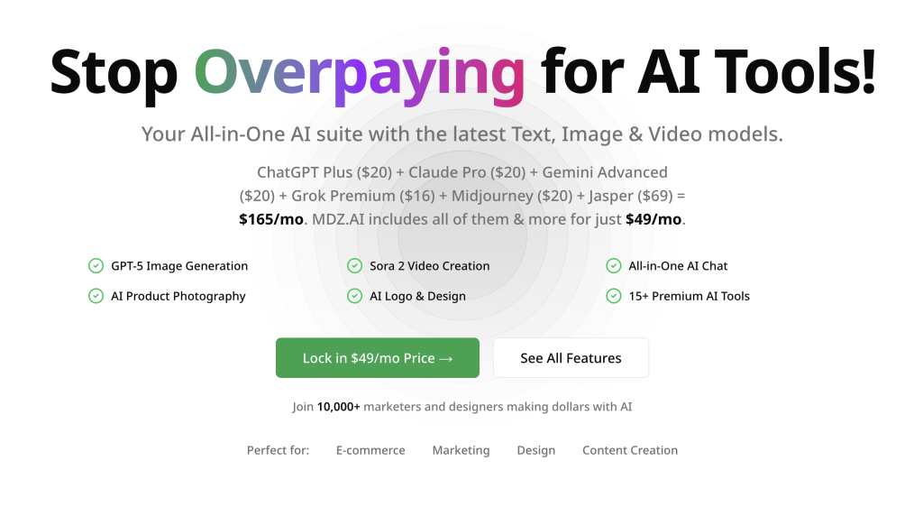 MDZ.AI is specifically designed for e-commerce sellers, digital marketers, content creators, and designers who need reliable AI capabilities for their daily workflows.